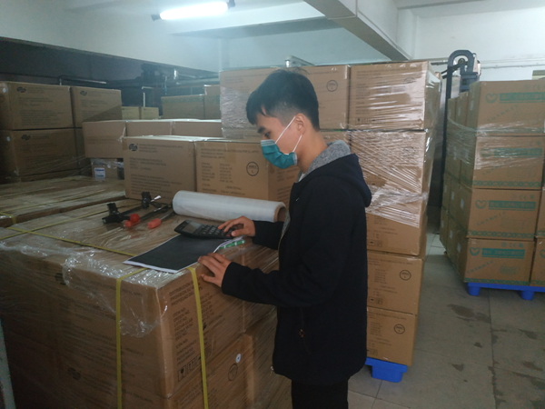 朱少秋同志在口罩工廠協(xié)助監(jiān)督口罩儲(chǔ)備出貨管理工作