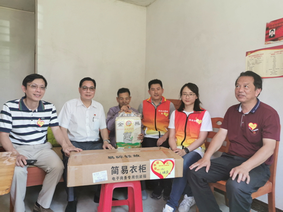 集團楊軍總經(jīng)理(左一)為徑口村貧困戶代表林國強(右一)送上微心愿物資