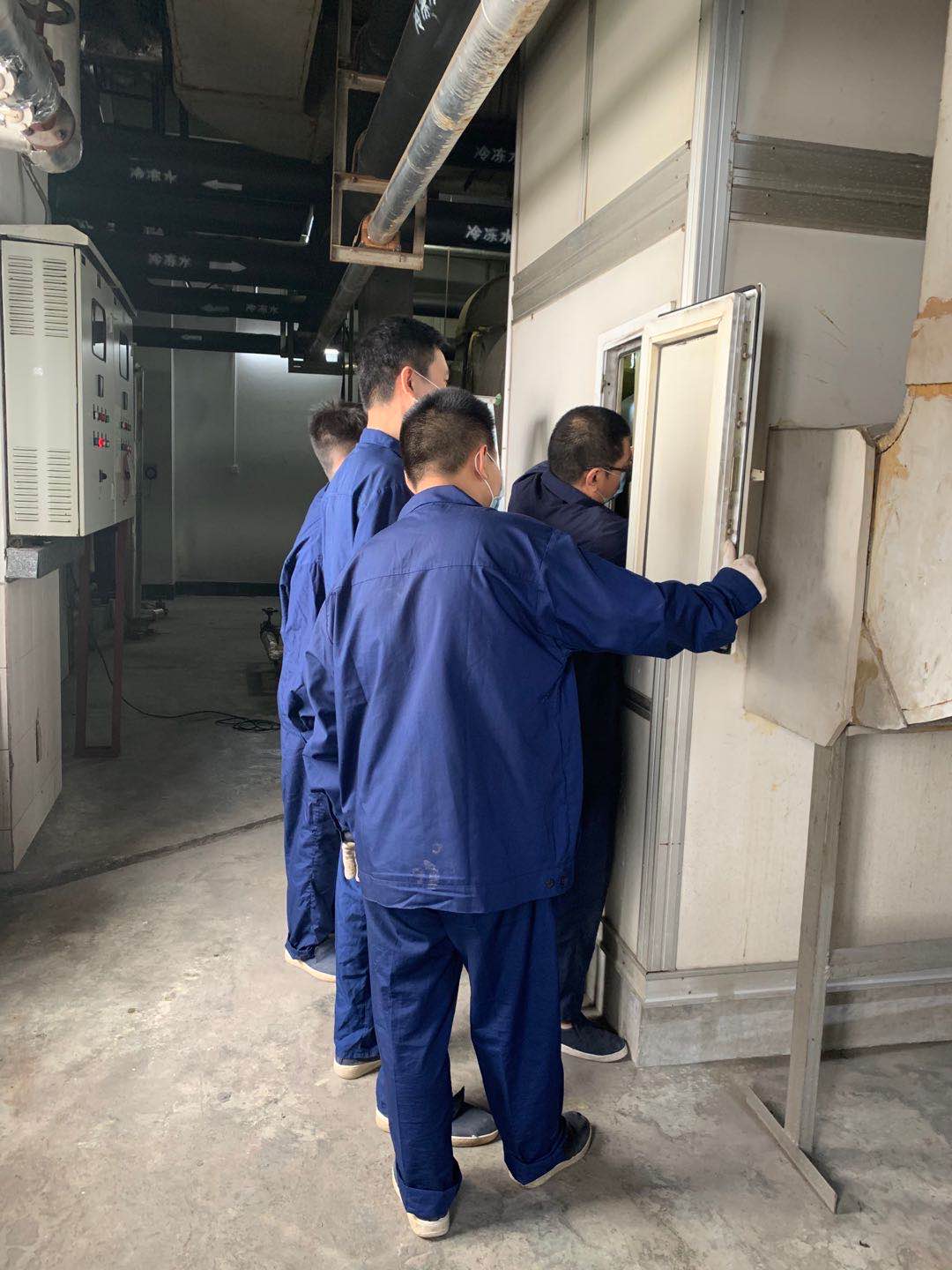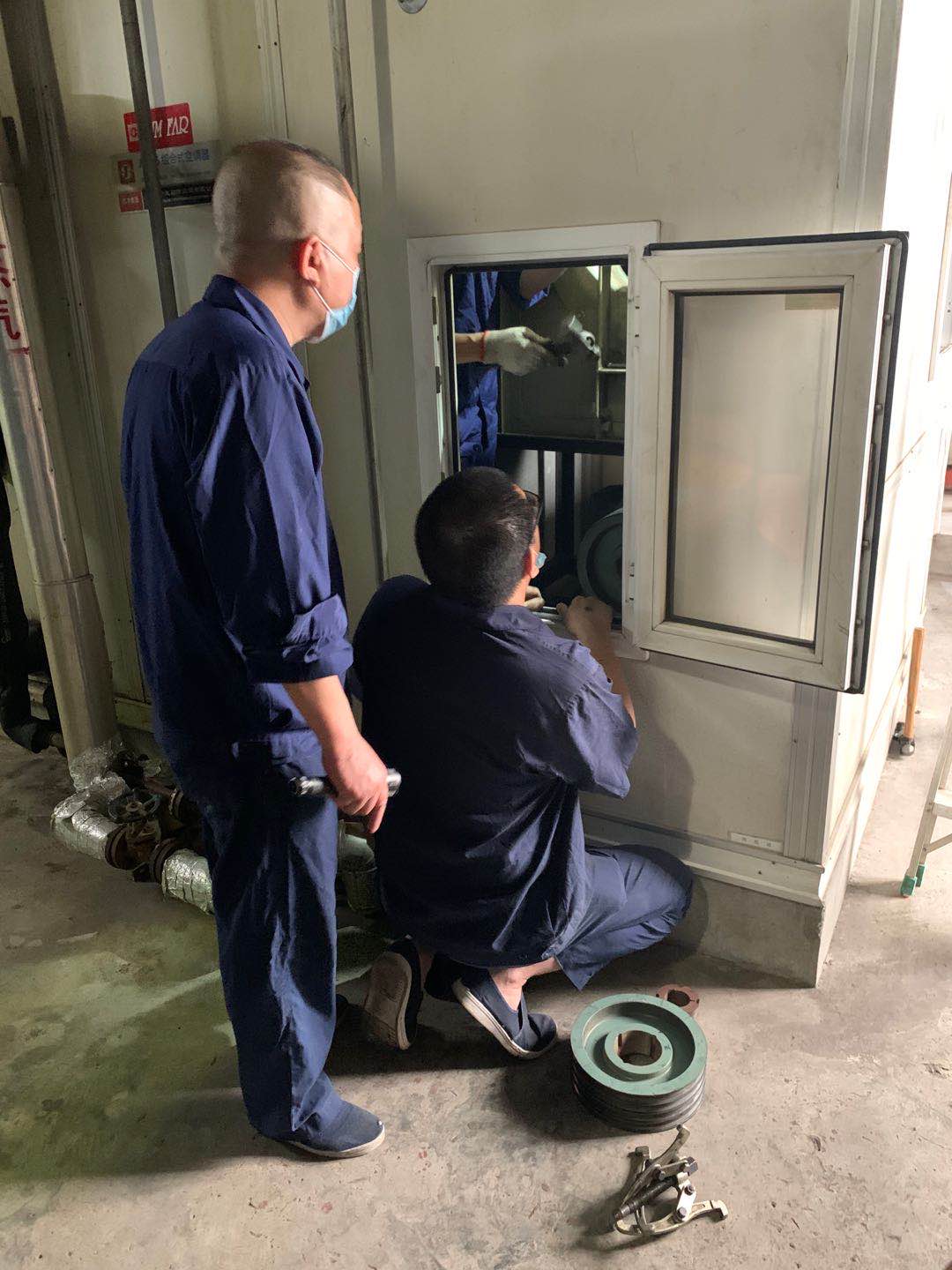 2020年5月13日凌晨4時,此時動力部綜合班巡檢人員劉廣龍、陳嘉明正在巡檢生產(chǎn)車間各樓層的空調(diào)運行情況,在巡查過程中發(fā)現(xiàn)二樓3#組合式空調(diào)器發(fā)生變頻器故障。該空調(diào)器服務(wù)于軟膠囊車間的其中一條生產(chǎn)線。他們發(fā)現(xiàn)特發(fā)情況后,不敢怠慢,立即對3#空調(diào)器進行全面檢查,最后確定是風(fēng)機軸承出現(xiàn)了異常。兩人經(jīng)過簡單的商議,評估了設(shè)備的情況后決定:對出現(xiàn)異常的風(fēng)機軸承作簡單的處理,重新運行空調(diào)系統(tǒng),并嚴(yán)格監(jiān)控3#空調(diào)器的運行狀態(tài)以及生產(chǎn)車間內(nèi)溫濕度的情況,首先確保車間的生產(chǎn)不受影響。運行兩小時后,他們在監(jiān)控的過程中再次發(fā)現(xiàn)風(fēng)機軸承存在較大的異響??紤]到3#空調(diào)器繼續(xù)運行的風(fēng)險,他們迅速將情況反映給上級領(lǐng)導(dǎo),部門領(lǐng)導(dǎo)得知情況后高度重視,與制造部緊密聯(lián)系,決定在受影響的工序停止生產(chǎn)并把儲存的藥品轉(zhuǎn)運到其它房間后,暫時停運3#空調(diào)器。早上7點多,動力部李漢周部長馬上召集綜合班組員召開緊急會議,共同商議后確定了搶修方案。會后,在班長黎沛強的指導(dǎo)下大家立即投入到緊張的搶修工作中去,在狹窄的風(fēng)柜里,師傅們各施其職,有的負(fù)責(zé)切割、有的負(fù)責(zé)拆除、還有的負(fù)責(zé)后勤保障,很快搶修人員已經(jīng)滿身汗水,連續(xù)干了3個多小時,從不曾聽他們喊過一句“要休息”,大家心里都奔著同一個目標(biāo),就是:盡快把空調(diào)修好,恢復(fù)生產(chǎn)。午飯后,大家一刻也沒休息,又馬上投入工作。連續(xù)奮戰(zhàn)的他們終于把空調(diào)修好,試運行正常后,下午4點恢復(fù)了正常生產(chǎn)。