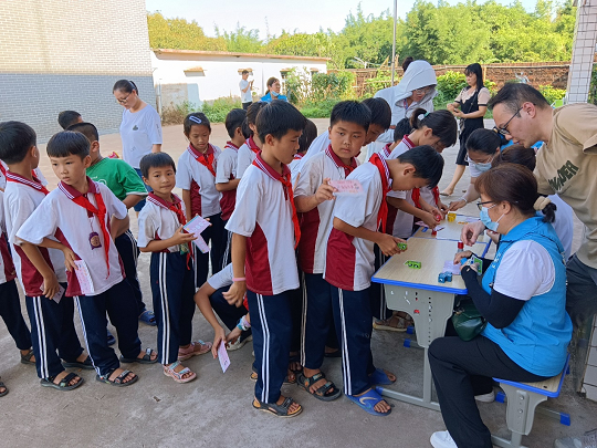 講師們還帶領(lǐng)大家體驗搓制夏桑菊顆粒,指導(dǎo)制作“夏桑菊書簽”及“二天油中藥香囊”。這次沉浸式的研學(xué)公益課堂,讓全體學(xué)生感受了中醫(yī)藥文化及星群非遺文化的魅力,更以寓教于樂的方式在孩子們的心中播下了中醫(yī)藥文化傳承的種子。