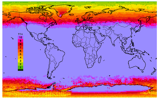 紫外線指數(shù)值越高,意味著對皮膚和眼睛造成傷害的可能性就越大,發(fā)生傷害所需的時間就越短。