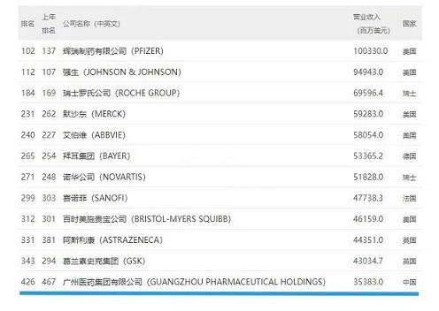 廣藥集團是唯一入選制藥分行業(yè)榜單的中國企業(yè)位居第12位