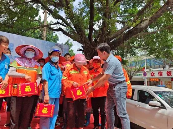 活動(dòng)現(xiàn)場(chǎng),白云山星群為環(huán)衛(wèi)工人獻(xiàn)上“星群夏桑菊清涼飲料”防暑物資,感謝他們?cè)谙娜湛崾顖?jiān)守崗位、為城市干凈整潔付出辛勤的勞動(dòng)。