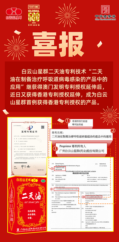 作為大灣區(qū)中醫(yī)藥企業(yè)成員之一,近年來(lái),白云山星群科研專利成果不斷涌現(xiàn),迄今累計(jì)擁有發(fā)明專利達(dá)30多項(xiàng),包括“一種抗流感病毒的中藥有效部位及其制備方法”專利、“夏桑菊提取物在抑制人類冠狀病毒中的應(yīng)用”專利、“夏桑菊在制備防治手足口病的藥物中的新應(yīng)用”專利、“一種阿法骨化醇軟膠囊及其制備方法”專利等,其中三項(xiàng)專利榮獲了“中國(guó)專利優(yōu)秀獎(jiǎng)”.專利矩陣凸顯白云山星群高水平的中醫(yī)藥科研創(chuàng)新能力,同時(shí)夯實(shí)了白云山星群的品牌核心競(jìng)爭(zhēng)力。