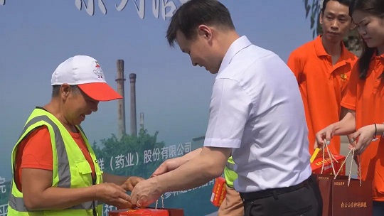 活動現(xiàn)場,白云山星群同時舉行了第四屆廣藥白云山星群夏桑菊涼茶文化節(jié)(汕頭站)活動,為當?shù)丨h(huán)衛(wèi)工人贈送了一批慰問品,給他們送去一份清涼、帶去一份問候,感謝環(huán)衛(wèi)工人在推進“百千萬工程”人居環(huán)境整治中付出的辛勤勞動。同時, 向他們宣傳防暑下火小妙招,提醒他們做好高溫防護措施和防護方法。