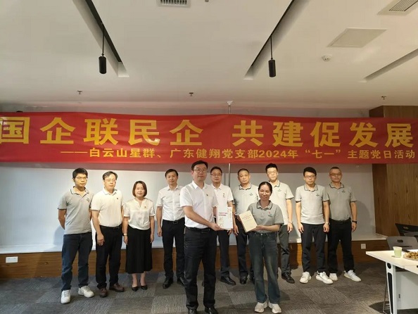 為進(jìn)一步深化落實(shí)“紅聯(lián)共建”工作機(jī)制,扎實(shí)推進(jìn)黨紀(jì)學(xué)習(xí)教育,促進(jìn)企業(yè)共同發(fā)展。星群公司與重點(diǎn)客戶中的民營(yíng)企業(yè)“健翔藥業(yè)”在7月17日聯(lián)合舉辦紅聯(lián)共建“七一”主題黨日活動(dòng)。星群公司黨委書記、董事長(zhǎng)胡文新,健翔藥業(yè)董事長(zhǎng)凌華耀,星群公司總經(jīng)理賀慶、黨委副書記鄺敏儀以及雙方企業(yè)8名黨支部的書記、黨員代表等20余人參加了活動(dòng)。