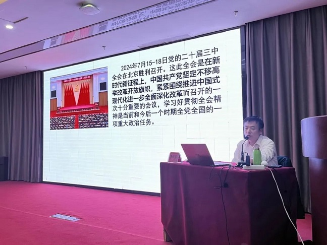 開班式結(jié)束后,中國(guó)井岡山干部學(xué)院李春耕教授圍繞進(jìn)一步全面深化改革,推進(jìn)中國(guó)式現(xiàn)代化的時(shí)代背景、精神實(shí)質(zhì)、系統(tǒng)部署等三個(gè)方面為全體學(xué)員講授專題黨課,對(duì)學(xué)習(xí)貫徹黨的二十屆三中全會(huì)精神作了深入解讀。