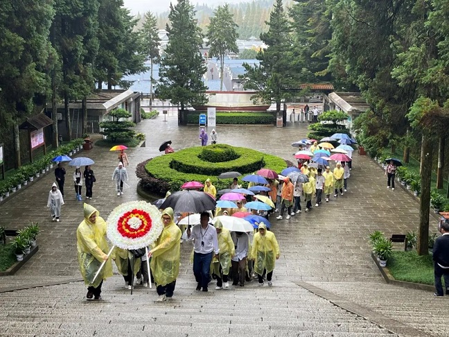 在井岡山的學(xué)習(xí)教育培訓(xùn)以現(xiàn)場(chǎng)教學(xué)為主。星群全體學(xué)員冒著綿綿細(xì)雨,首站來到“井岡山革命烈士陵園”敬獻(xiàn)花圈,吊唁革命先烈,瞻仰紀(jì)念堂、碑林、紀(jì)念碑、雕塑園,并重溫入黨誓詞。通過在莊重肅穆的環(huán)境下開展現(xiàn)場(chǎng)教學(xué),認(rèn)真學(xué)習(xí)井岡英烈堅(jiān)定理想信念、不屈不撓、勇于斗爭(zhēng)的大無畏精神。