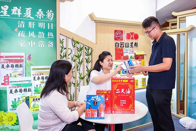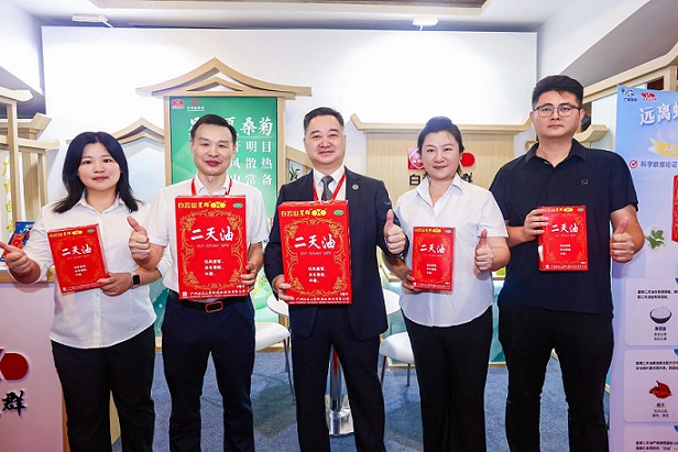 此外,作為白云山星群拳頭產品之一:星群二天油同樣獲得了參展人員的青睞。始創(chuàng)于1915年的二天油,于2022年入選廣東省第八批省級非物質文化遺產代表性項目名錄,傳承110年至今,其制作的關鍵在于黑油煉制。秉持其名源自《幼學瓊林》“感救死之恩曰再造,誦再生之德曰二天”的初心,黑油制作工藝流程一直嚴格遵循傳統(tǒng)工藝對原料成色、投料時間、配置程序的嚴格標準,而且煉制時間不少于一個月。達到“滴水成珠”品質的黑油與薄荷等藥材混合后,制成棕中透紅、帶有薄荷香氣的二天油,它不僅能防蚊驅蚊、緩解叮咬不適,還可芳香開竅,緩解傷風感冒、舟車眩暈、中暑等癥狀。