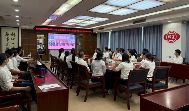 星群公司組織公司領(lǐng)導(dǎo)、退伍軍人、現(xiàn)役軍屬、黨員代表、團(tuán)員代表等40余人集中觀看了直播,共同回顧歷史,緬懷先烈。大家認(rèn)真聆聽了習(xí)近平總書記發(fā)表的重要講話,觀看受閱部隊威武雄壯的氣勢以及先進(jìn)的國產(chǎn)現(xiàn)役主戰(zhàn)裝備,令人目不暇接,倍感振奮。參加觀看的公司領(lǐng)導(dǎo)表示,觀看閱兵儀式后更深感和平來之不易,本次閱兵儀式的成功舉辦凝聚了所有參與者的堅持與汗水。以此為契機(jī),可以看到“團(tuán)結(jié)就是力量”的生動展示。廣大星群員工要以“強(qiáng)企有我”的信念,群策群力,在各自崗位上為星群的高質(zhì)量發(fā)展貢獻(xiàn)自己的一份力量。黨員代表和團(tuán)員代表們也紛紛表示,此次觀看閱兵儀式后,更加感受到銘記歷史、傳承和弘揚(yáng)抗戰(zhàn)精神的重要性,今后要將愛國情懷融入日常,以更加飽滿的熱情、更加昂揚(yáng)的斗志、更加務(wù)實(shí)的作風(fēng)投入到工作中。